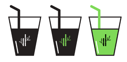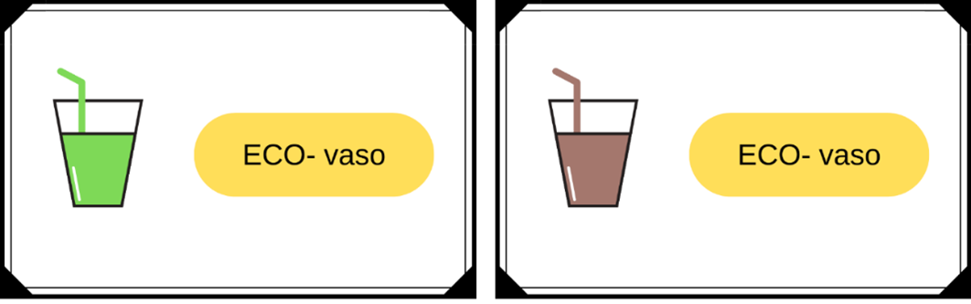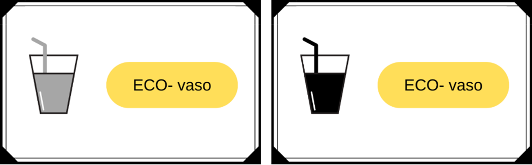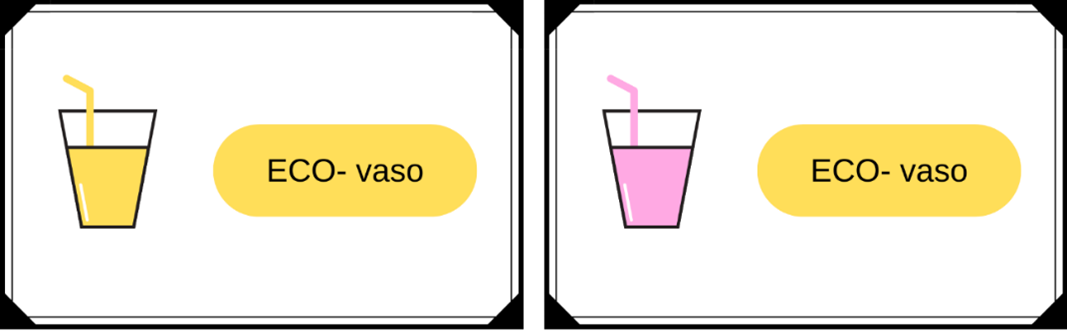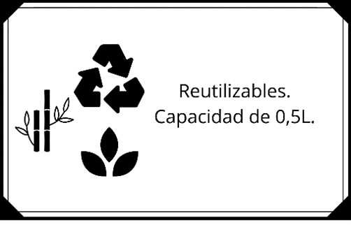 Cada vaso va acompañado de una tarjeta personalizada dependiendo del color del mismo, en la cual se indica que está fabricado con bambú y que tiene una capacidad de medio litro, además de ser reutilizables y reciclables.